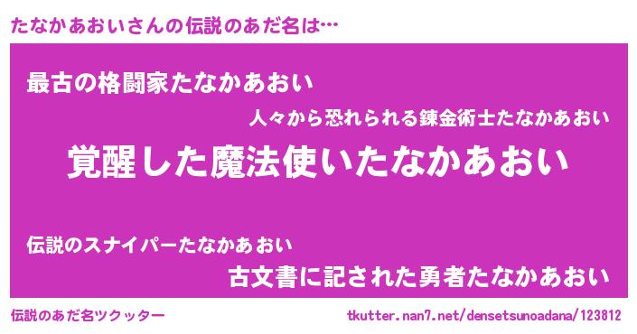 | ヒーロー風カッコイイあだ名 | 『幻影騎士タナ』『ネオタナカアオイ』 |
