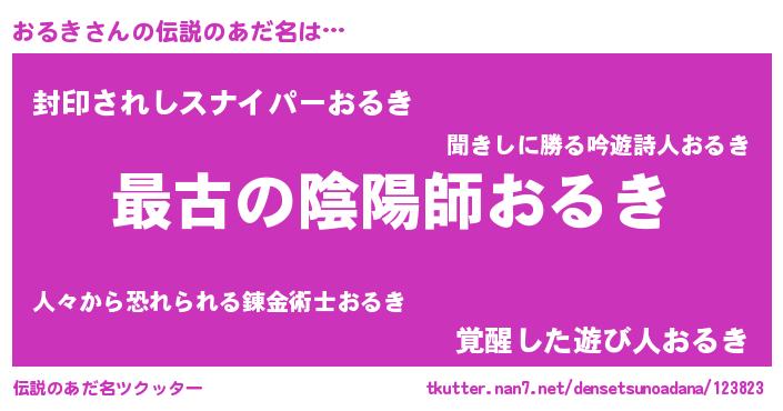 | 意味不明あだ名 | 『おるきフォーエバー』『自称おるき』 |