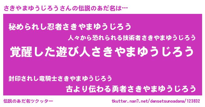 | 男性向けラノベタイトル風あだ名 | 『さきやまゆうじろうの嫁は女の子じゃないと思った?』 |