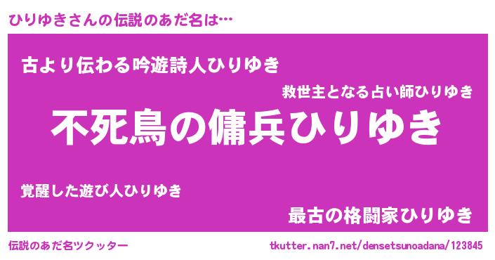 | 意味不明あだ名 | 『住所不定無職ひりゆき(14歳)』 |