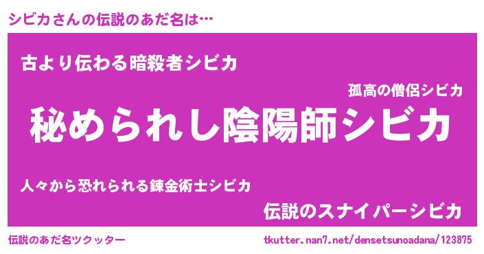 | 意味不明あだ名 | 『自称シビカ』『シビカフォーエバー』 |