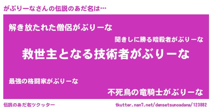 | ヒーロー風カッコイイあだ名 | 『慈愛の使者がぶりーな』『銀牙騎士ガブ』 |