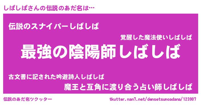 | ヒーロー風カッコイイあだ名 | 『ウルトラしばしばマン』『仮面シバダー』 |