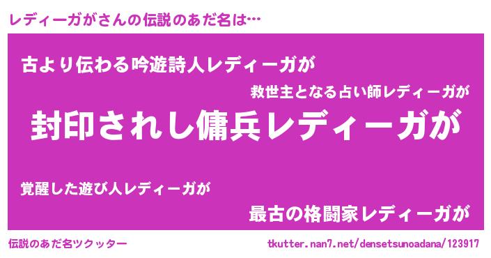 | 胡散臭い通販商品みたいなあだ名 | 『億万長者になれる水晶球…その名も「レディーガが」』 |