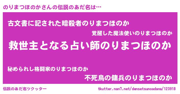 | 男性向けラノベタイトル風あだ名 | 『この素晴らしい世界にのりまつほのかを!』 |
