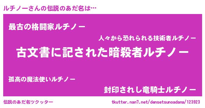 | ポケモン風あだ名 | 『ゼニルチ』『ルチノダネ』 |