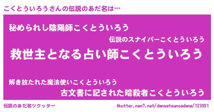 | ヒーロー風カッコイイあだ名 | 『天空の使者こくとういろう』 |