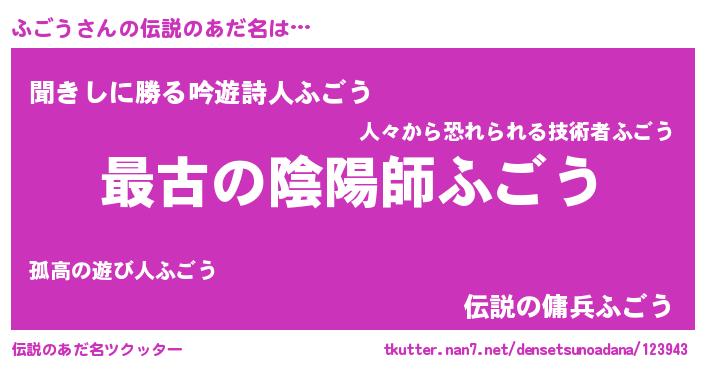 | ファンタジー風あだ名 | 『エターナルフゴウー』『フゴディッシュ』 |