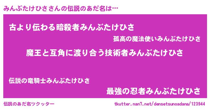 | ヒーロー風カッコイイあだ名 | 『愛の使者みんぶたけひさ』 |