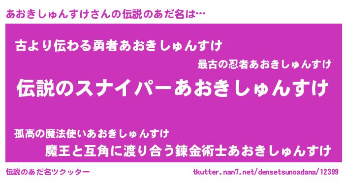 | ヒーロー風カッコイイあだ名 | 『スーパーアオキシュンスケ』 |