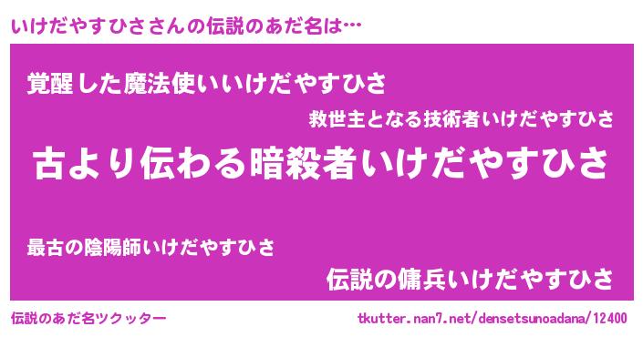 | ヒーロー風カッコイイあだ名 | 『仮面イケダー』『ネオイケダヤスヒサ』 |