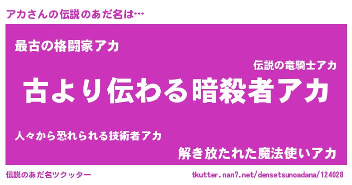 | ヒーロー風カッコイイあだ名 | 『ネオアカ』『ウルトラアカマン』 |