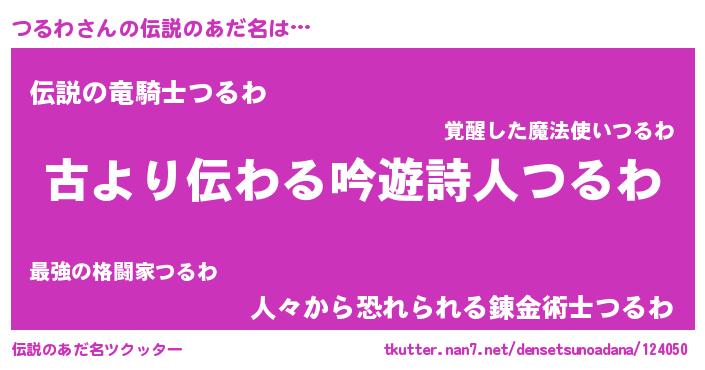 | 男性向けラノベタイトル風あだ名 | 『つるわという概念が存在しない退屈な世界 』 |
