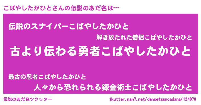 | 意味不明あだ名 | 『自称こばやしたかひと』 |