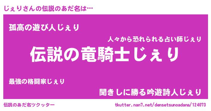 | 男性向けラノベタイトル風あだ名 | 『じぇりの憂鬱』 |