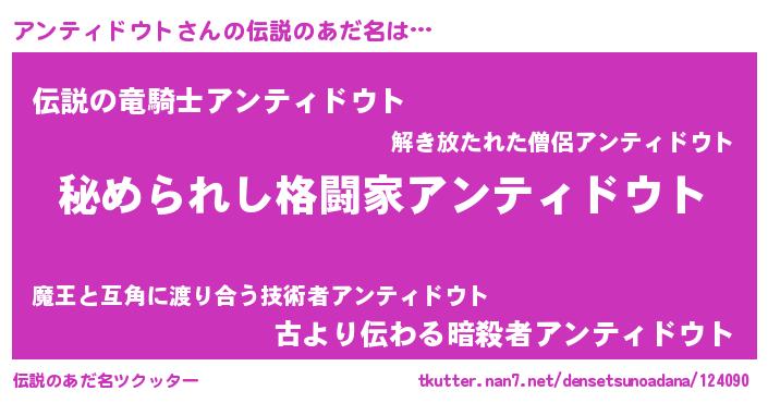 | 意味不明あだ名 | 『アンティドウトフォーエバー』 |