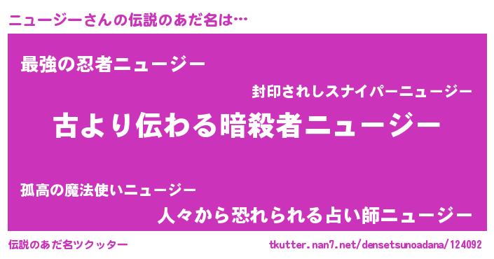 | ヒーロー風カッコイイあだ名 | 『ネオニュージー』『究極戦士ニュージー』 |