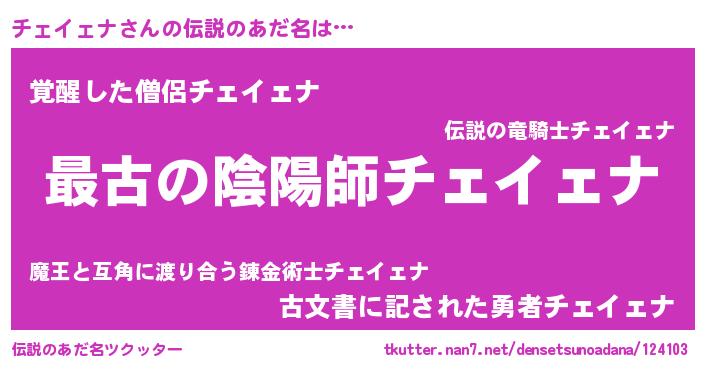 | 意味不明あだ名 | 『住所不定無職チェイェナ(91歳)』 |