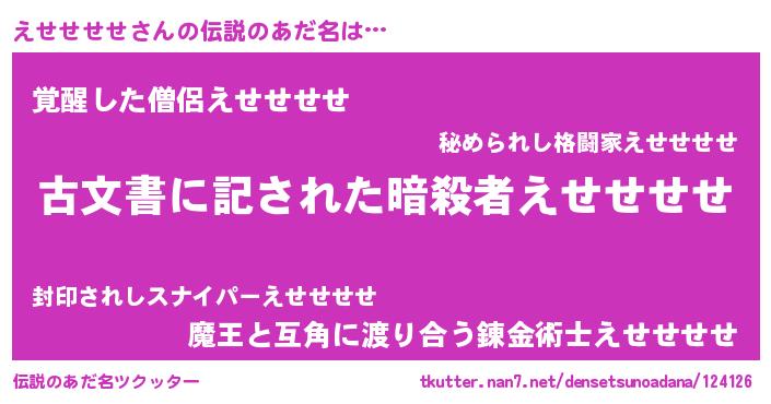 | ヒーロー風カッコイイあだ名 | 『ネオエセセセセ』『幻影騎士エセ』 |