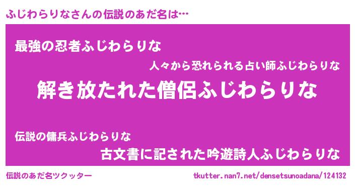 | 意味不明あだ名 | 『とにかく怪しいふじわらりな』 |