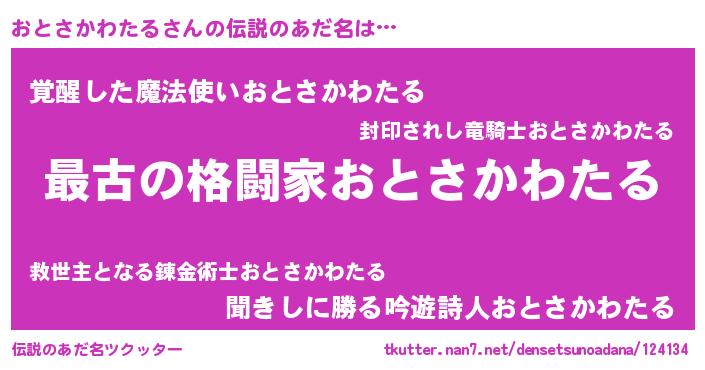 | ファンタジー風あだ名 | 『エターナルオトサカワタルー』 |