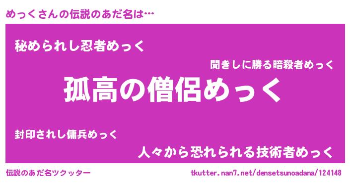 | 意味不明あだ名 | 『しいたけ科めっく属』『自称めっく』 |
