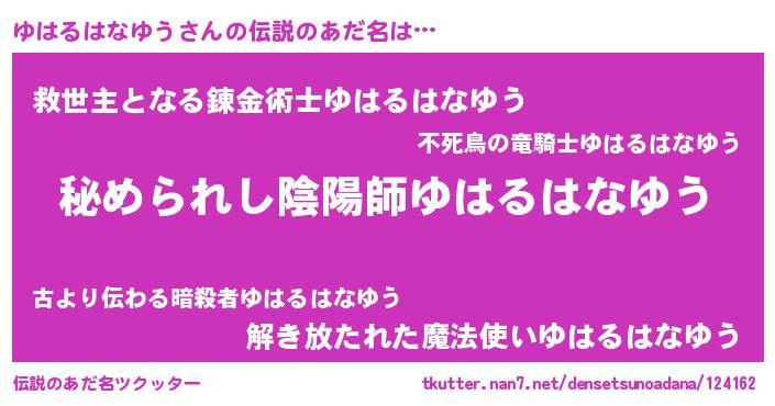 | 女子向けラノベタイトル風あだ名 | 『ゆはるはなゆうなんてお断りですっ。』 |