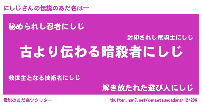 | ファンタジー風あだ名 | 『ニシディッシュ』『エターナルニシジー』 |