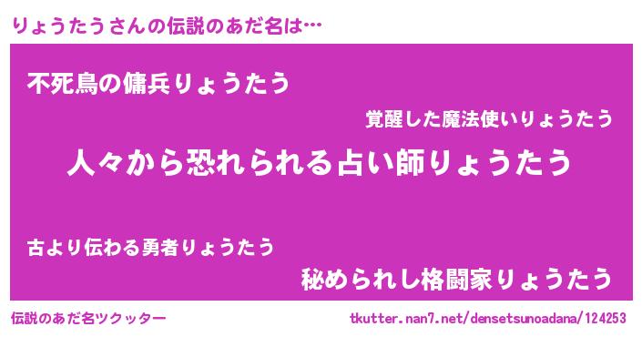 | ヒーロー風カッコイイあだ名 | 『友情の使者りょうたう』『仮面リョダー』 |