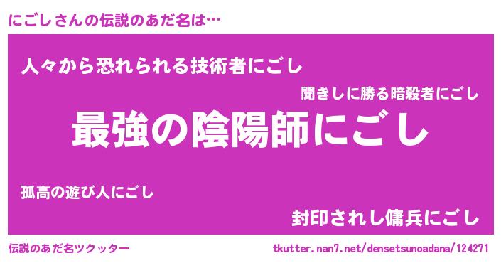 | 意味不明あだ名 | 『住所不定無職にごし(84歳)』 |
