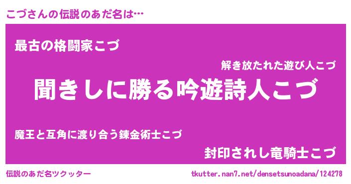 | ファンタジー風あだ名 | 『コヅディッシュ』『カークコヅラー』 |