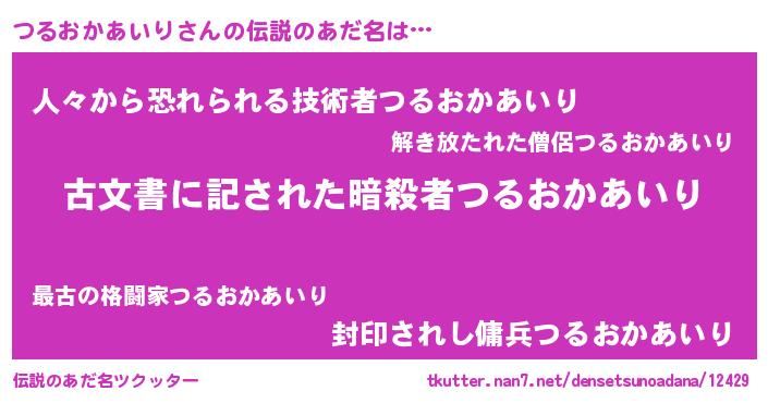 | 意味不明あだ名 | 『住所不定無職つるおかあいり(62歳)』 |
