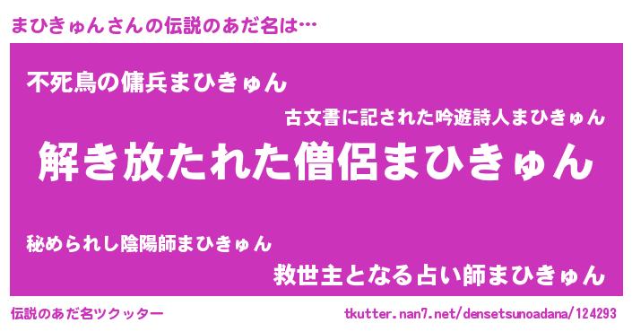 | 男性向けラノベタイトル風あだ名 | 『まひきゅんの嫁は女の子じゃないと思った?』 |