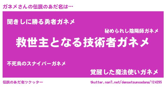 | ファンタジー風あだ名 | 『クインガット』『ガネディッシュ』 |