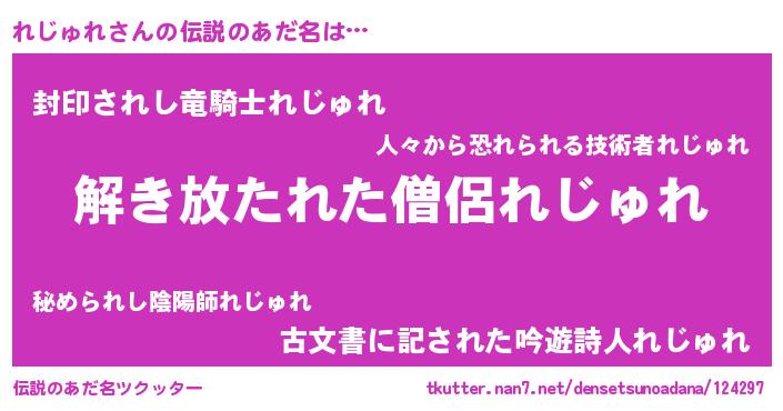 | 男性向けラノベタイトル風あだ名 | 『ダンジョンにれじゅれを求めるのは間違っているだろうか』 |