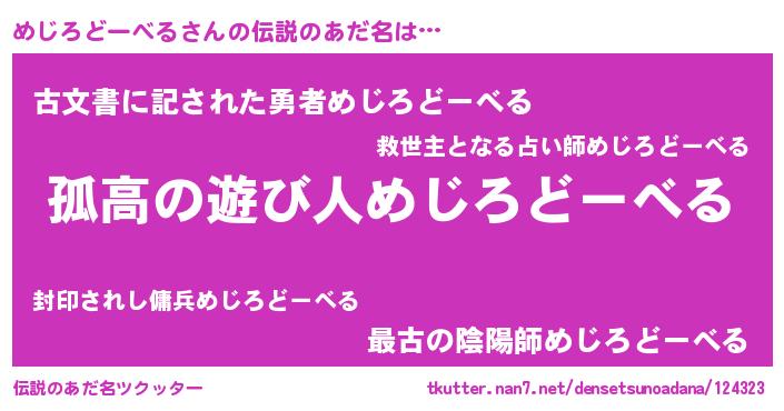 | 意味不明あだ名 | 『とにかく怪しいめじろどーべる』 |