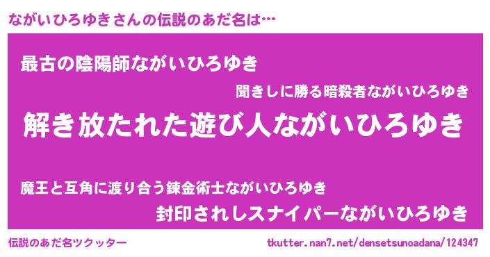 | 男性向けラノベタイトル風あだ名 | 『転生したらながいひろゆきだった件』 |