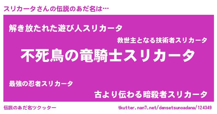 | 意味不明あだ名 | 『ペロリンスリカータ』『自称スリカータ』 |