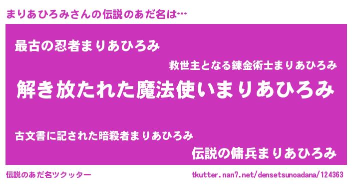 | 意味不明あだ名 | 『とにかく怪しいまりあひろみ』 |