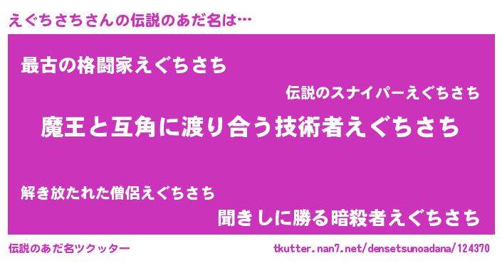 | ヒーロー風カッコイイあだ名 | 『慈愛の使者えぐちさち』『仮面エグダー』 |
