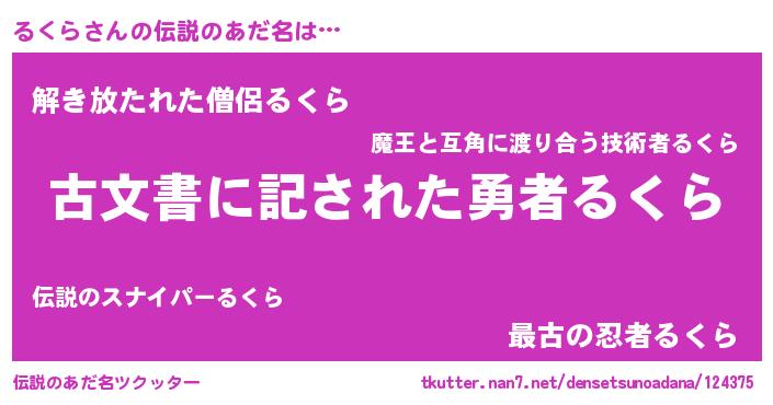 | 男性向けラノベタイトル風あだ名 | 『るくらに滅ぼされるだけの簡単なお仕事です』 |