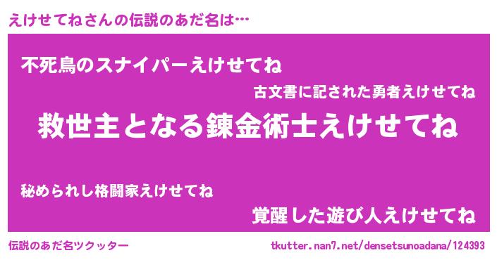 | ヒーロー風カッコイイあだ名 | 『天空の使者えけせてね』『天弓騎士エケ』 |