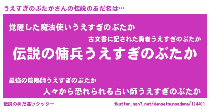 | 料理風あだ名 | 『うえすぎのぶたかごはん』 |