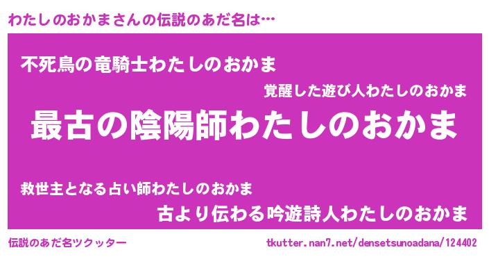 | 意味不明あだ名 | 『住所不定無職わたしのおかま(91歳)』 |
