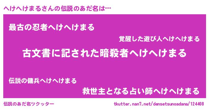 | 意味不明あだ名 | 『住所不定無職へけへけまる(40歳)』 |