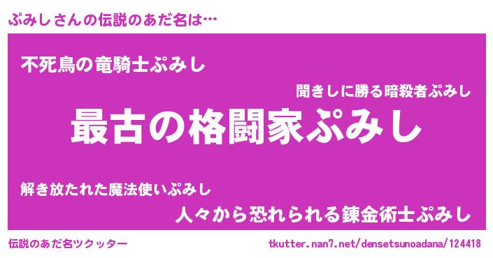 | 男性向けラノベタイトル風あだ名 | 『転生したらぷみしだった件』 |