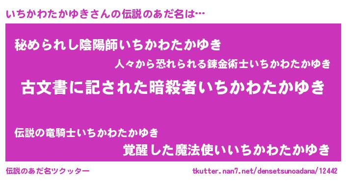 | 意味不明あだ名 | 『永久保存いちかわたかゆき』 |