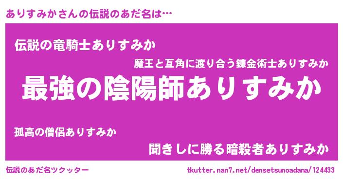 | 意味不明あだ名 | 『ありすみかフォーエバー』 |
