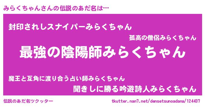 | ファンタジー風あだ名 | 『エターナルミラクチャンー』 |