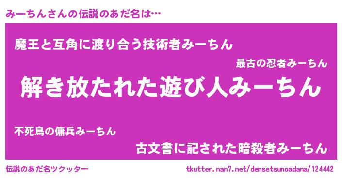 | ヒーロー風カッコイイあだ名 | 『銀牙騎士ミー』『友情の使者みーちん』 |